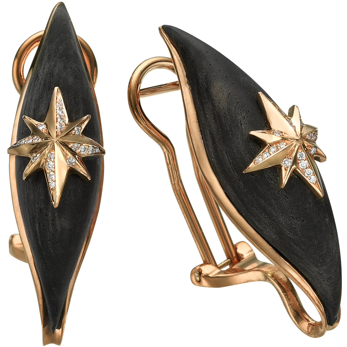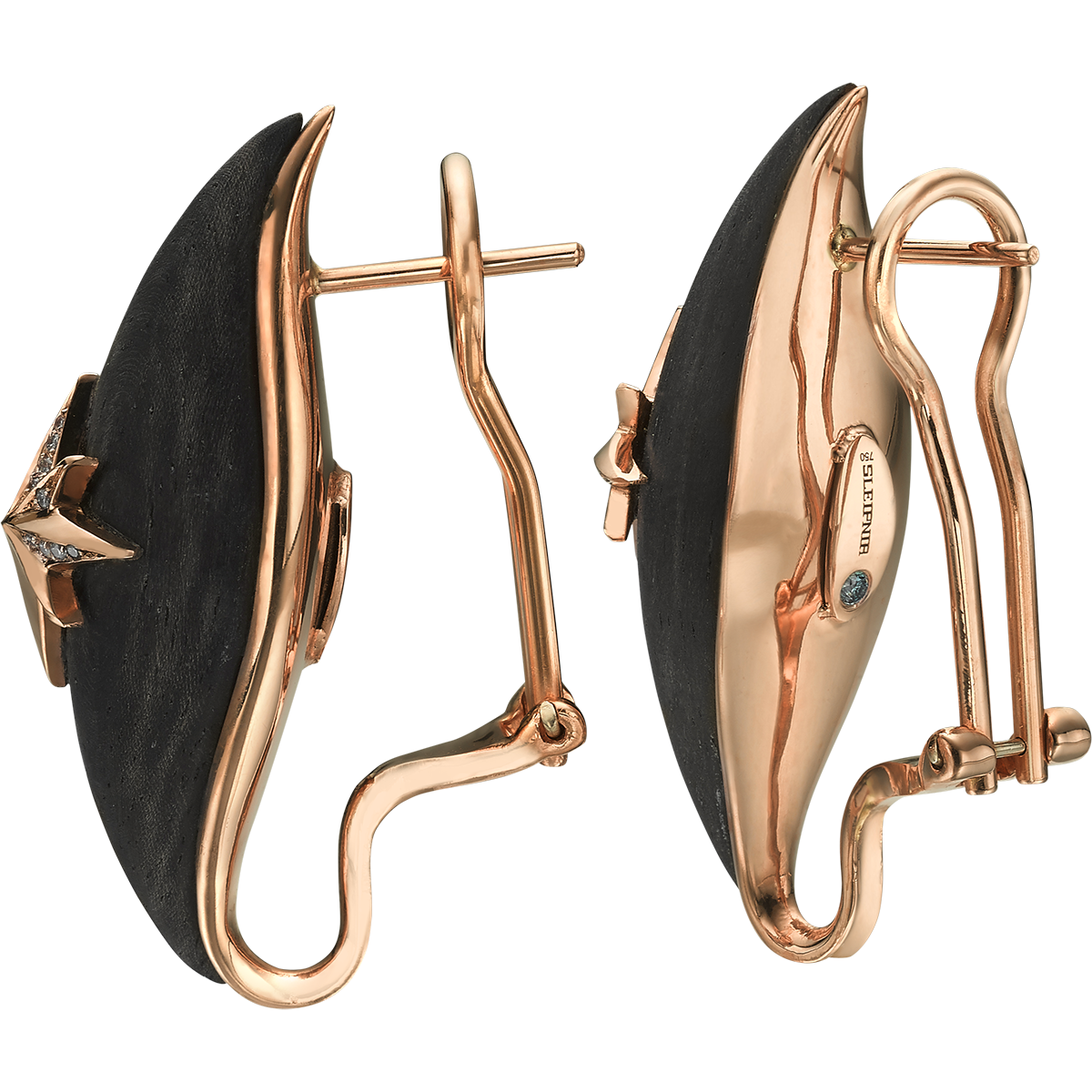 18K ROSE GOLD & BLACK EBONY WOOD EARRINGS