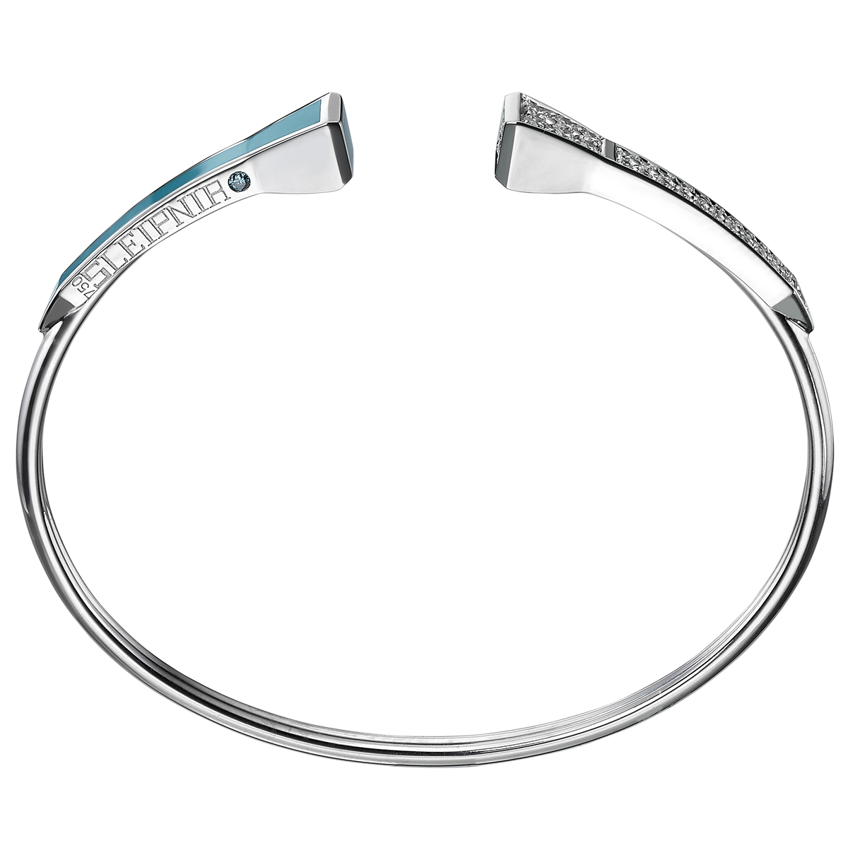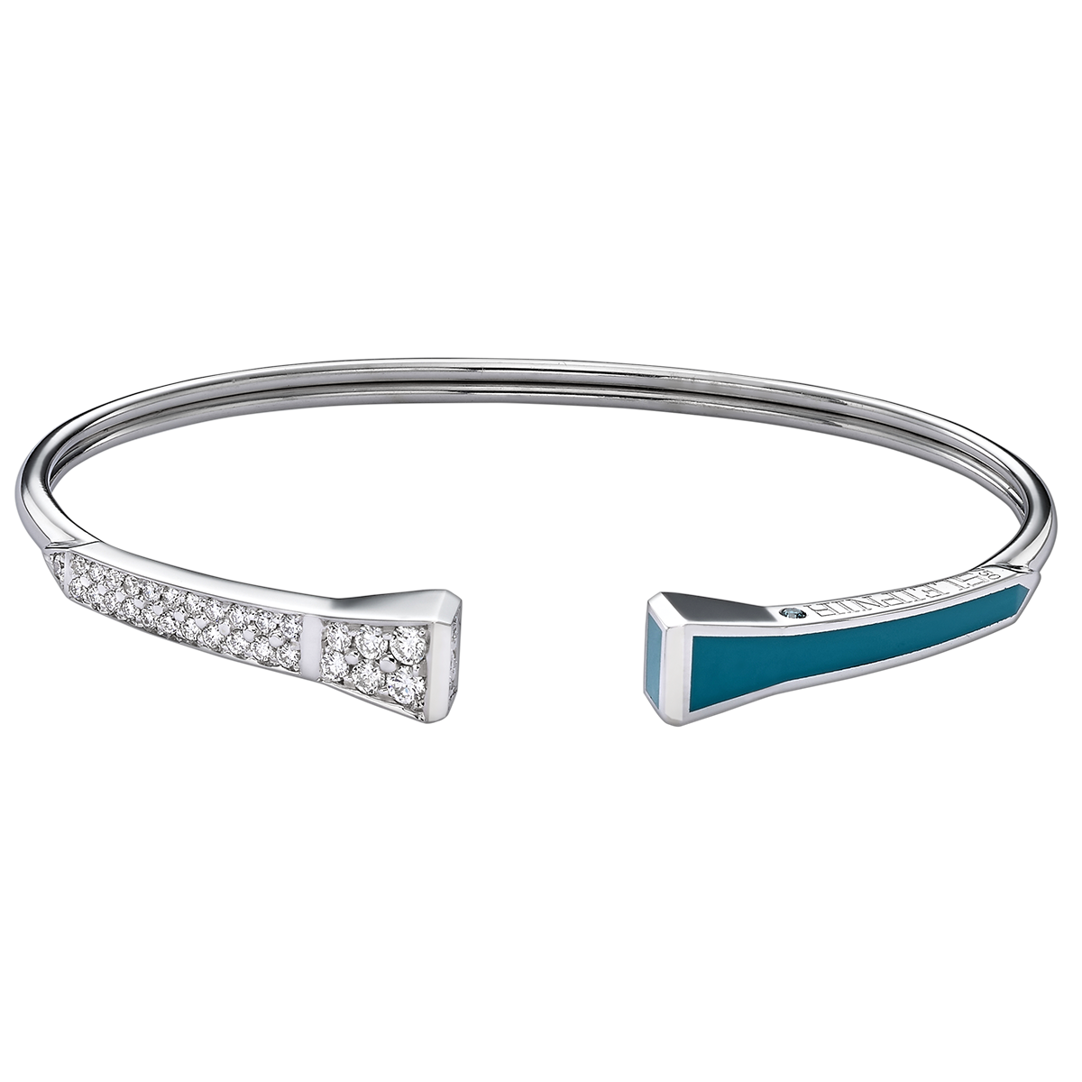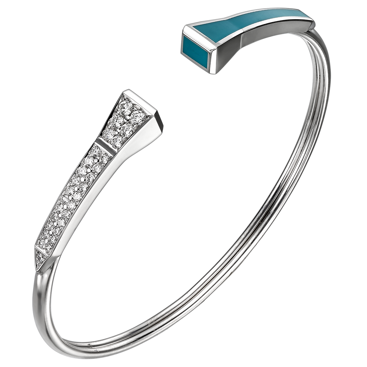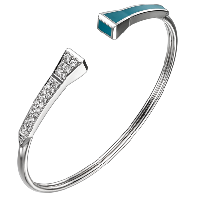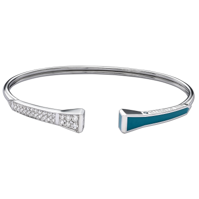 THIS UNIQUE TRUST HARMONY BRACELET MADE WITH 18K WHITE GOLD TURQUOISE ENAMEL AND SET WITH 0.50ct ROUND BRILLIANT DIAMONDS.
