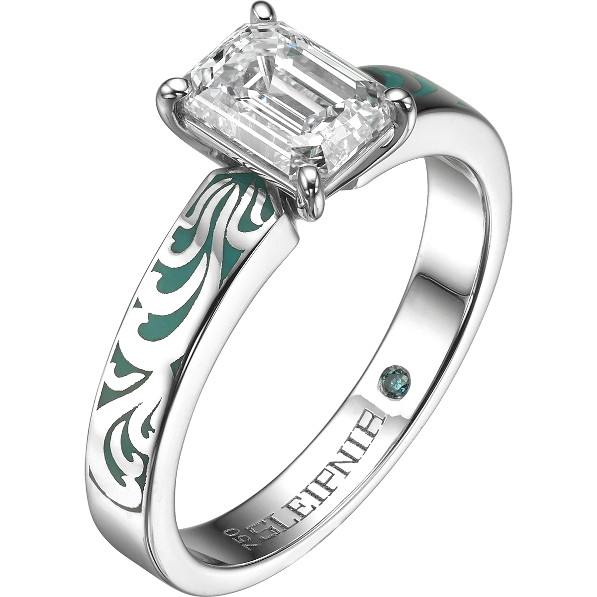 SLEIPNIR - 18K WHITE GOLD & TURQUOISE ENAMEL ENGRAVING