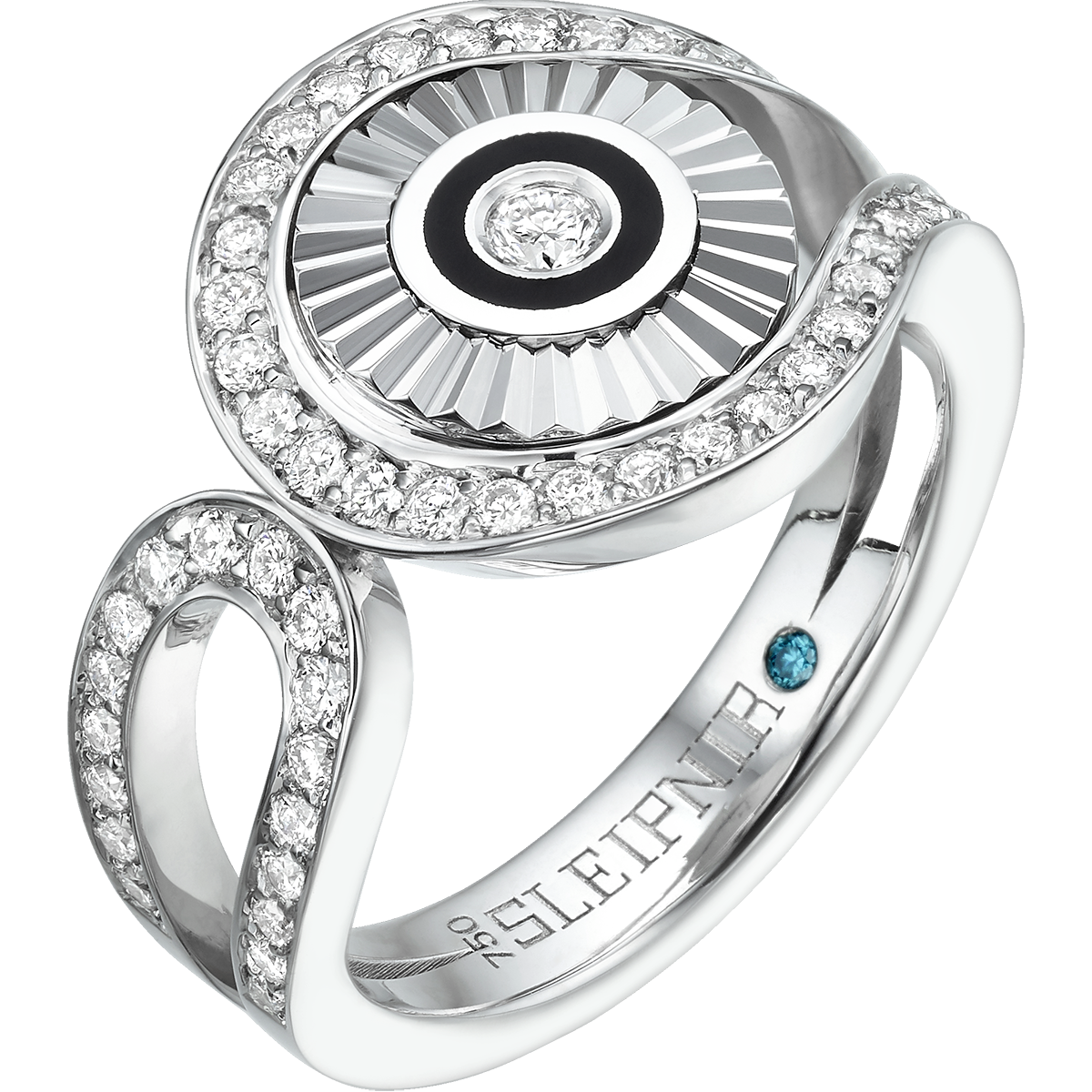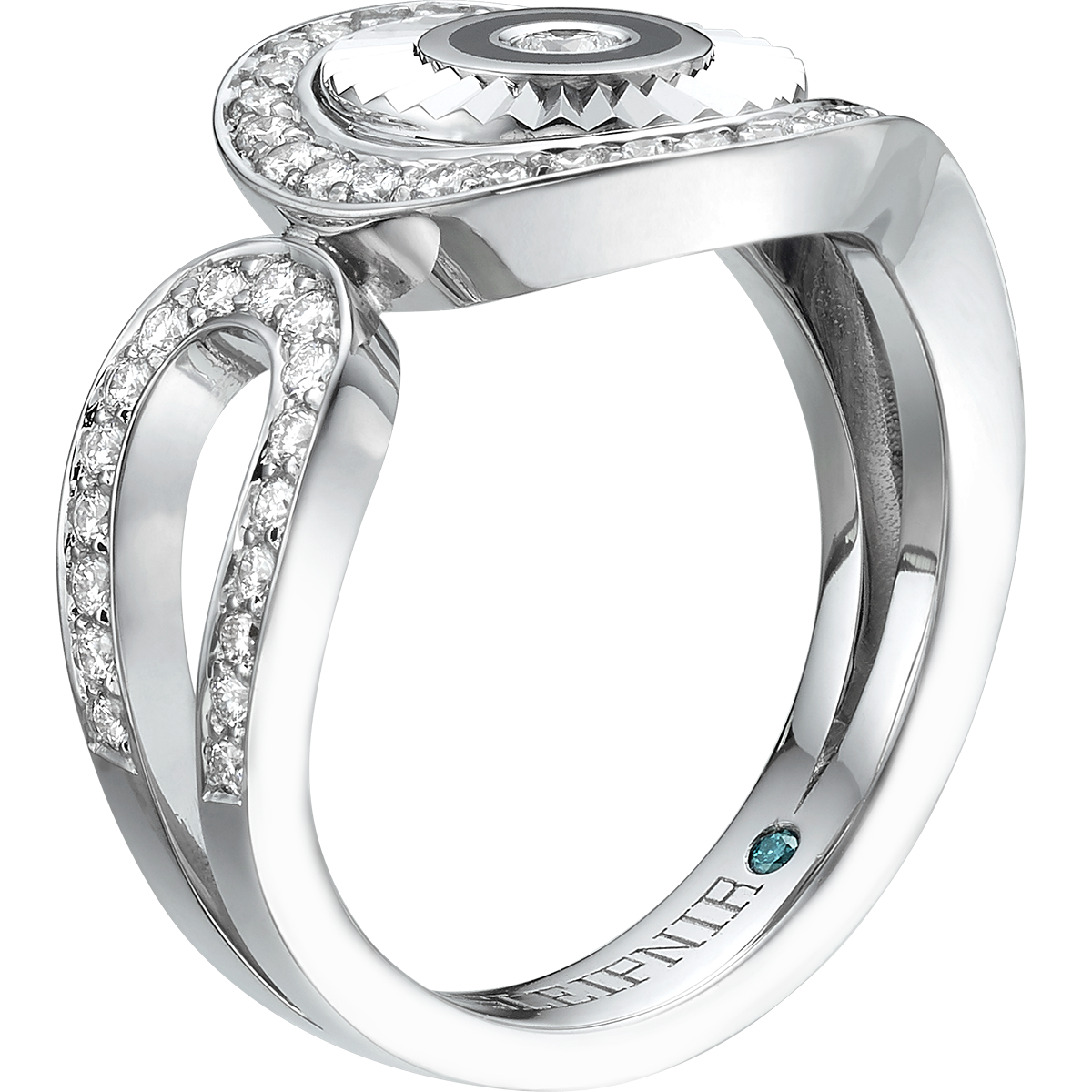 18K WHITE GOLD & BLACK ENAMEL RING